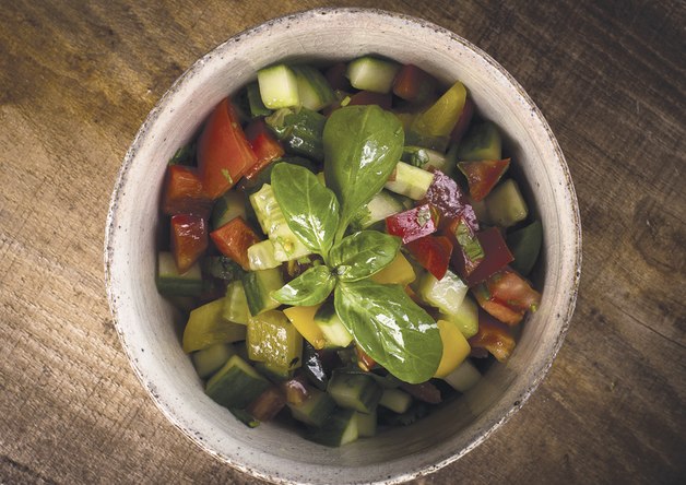 Tomatoes and cucumber are rich in water and help maintain fluid balance and healthy digestive functioning.